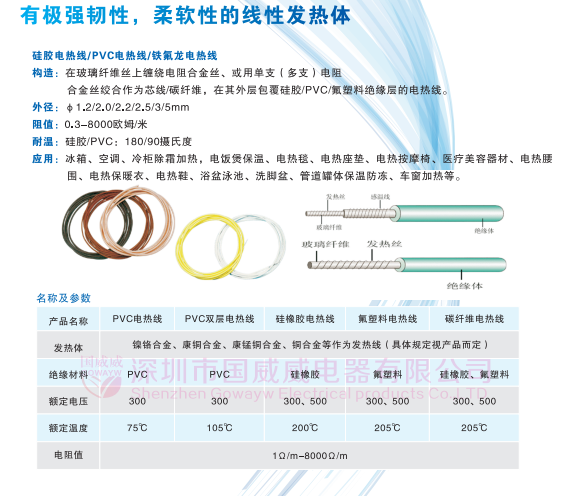 硅胶电热线/PVC电热线/铁氟龙电热线